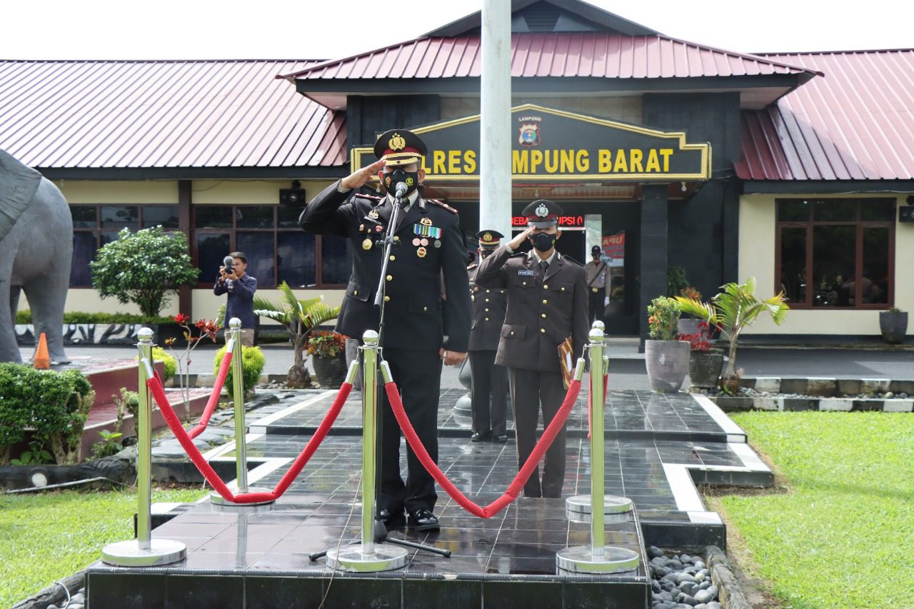 Upacara Peringatan Hari Pahlawan diikuti oleh Perwira Polres Lampung Barat, Sat Samapta 1 Peleton, Sat Lantas 1 Peleton, gabungan Staf 1 Peleton, gabungan Sat Reskrim, Sat Narkoba, dan Sat Intelkam 1 Peleton, Siswa Latja SPN 1 Peleton.