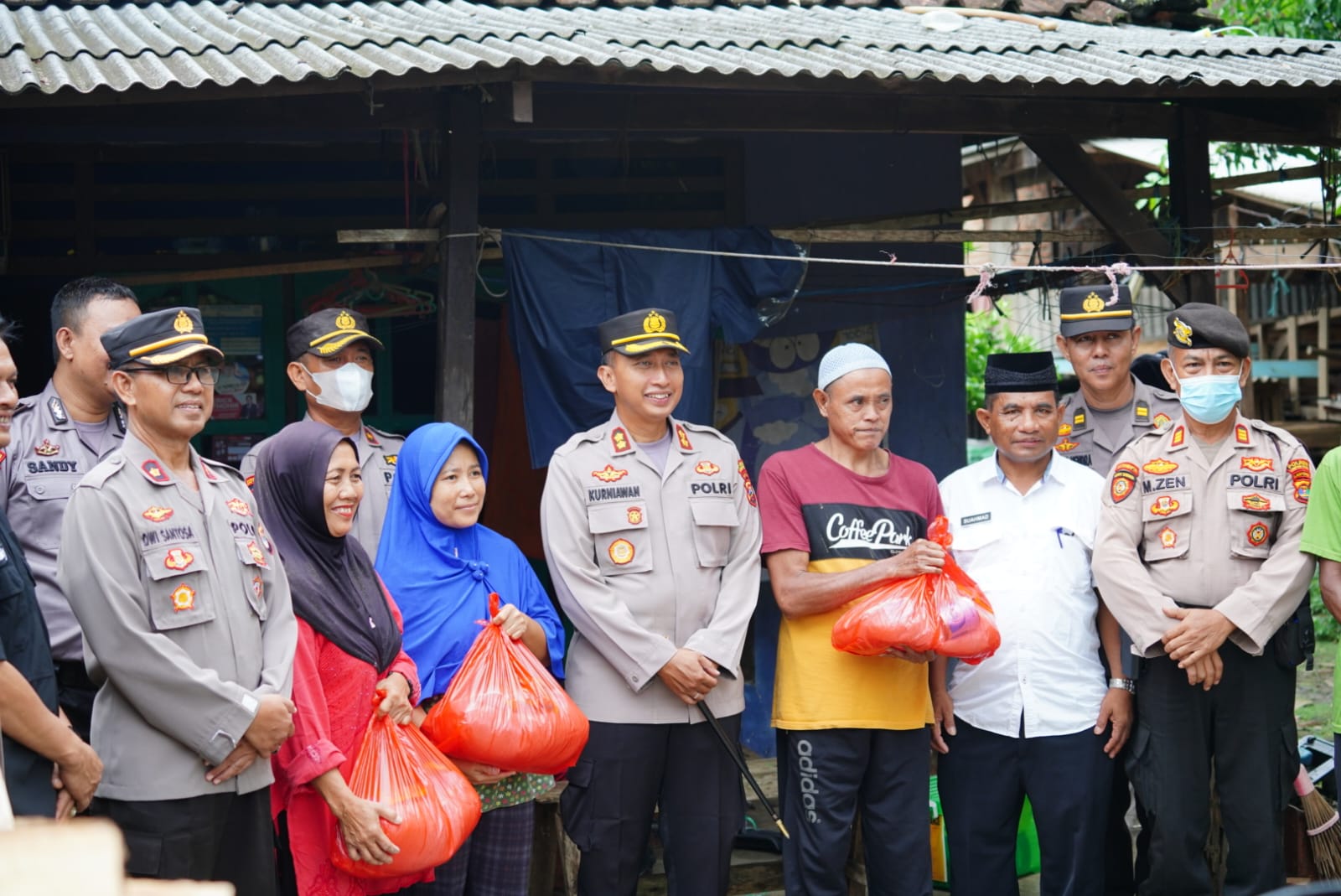 Terlihat di lokasi, Kapolres Lampung Utara AKBP Kurniawan Ismail bersama para Pejabat Utama kali ini menyambangi warga yang kurang mampu di Kelurahan Kelapa Tujuh Kecamatan Kotabumi Selatan. Rabu (29/3/2023)