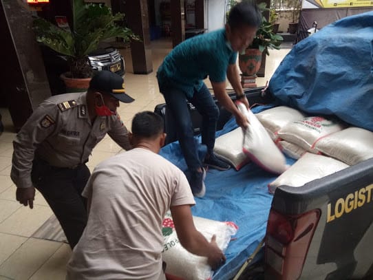 Kasubbag Sarpras Polres Lumajang AKP EDI SANTOSO, S.H mengatakan bahwa Beras bantuan sosial didistribusikan Subbag Sarpras ke 21 Polsek Jajaran Polres Lumajang masing masing Polsek menerima 440 kg , atau 11 Sak.