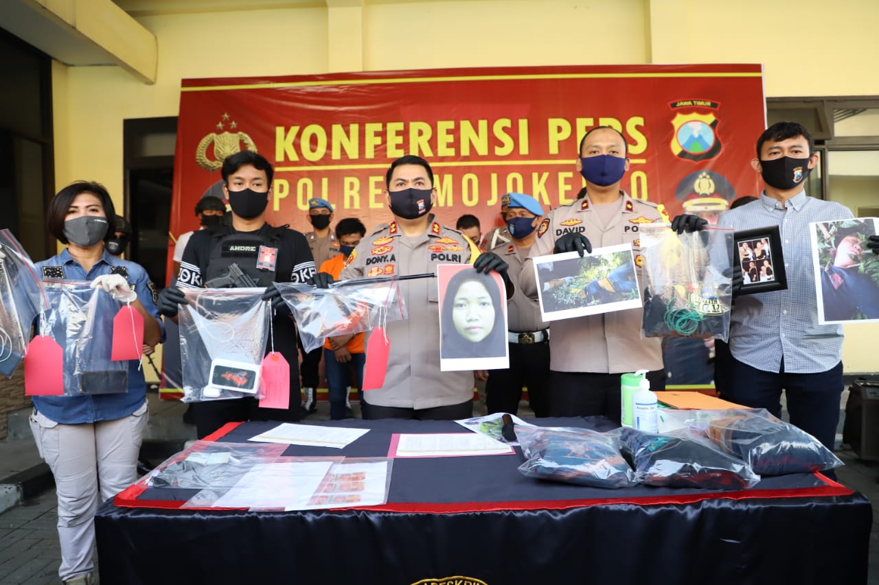 Kapolres Mojokerto AKBP Dony Alexander mengatakan tim kusus bentukan sat reskrim Polres Mojokerto berhasil menangkap dua pelaku bernama Mas’ud dan Rifat dimana Mas’ud merupakan tetangga sekaligus sahabat korban,” kata Kapolres saat konferensi pers di kantor Satreskrim Polres Mojokerto, Jalan Gajah Mada, Kecamatan Mojosari, Jumat (26/6/2020).