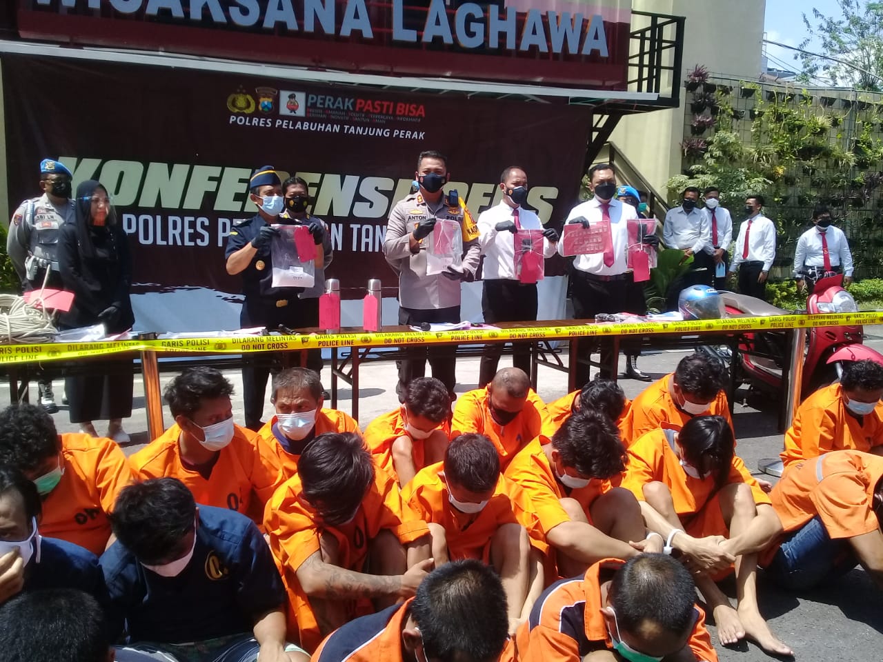 Surabaya, RepublikNews – Sebanyak 46 orang tersangka dalam jangka waktu 6 pekan dengan rincian 21 orang tertangkap kasus narkoba dan 25 orang tertangkap kasus kriminalitas di ringkus Polres Pelabuhan Tanjung Perak Surabaya.