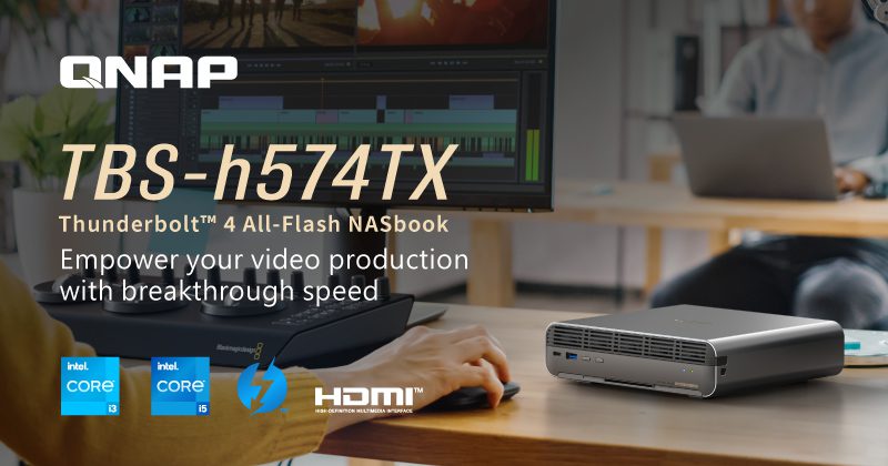 QNAP® Systems, Inc., inovator solusi komputasi dan penyimpanan terkemuka, secara resmi merilis Thunderbolt™ 4 all-flash NASbook TBS-h574TX terbaru yang menyederhanakan alur kerja produksi video dari praproduksi hingga pascaproduksi dengan peningkatan produktivitas. TBS-h574TX yang ringkas menyediakan penyimpanan latensi rendah all-flash dengan lima slot SSD PCIe NVMe E1.S/M.2, I/O kecepatan tinggi, dan daya komputasi arsitektur hibrid Intel® Core™ Generasi ke-13. Dengan dukungan SSD M.2 hot-swappable yang inovatif, TBS-h574TX mengoptimalkan pengalaman menggunakan Mac® dan PC Windows® dalam pengeditan video, transfer file besar, transcoding video, dan pencadangan. Desain portabel dan mudah digunakan menjadikan NASbook ideal untuk pengambilan gambar video di lokasi, tim pasca produksi, studio kecil, dan pengguna SOHO.