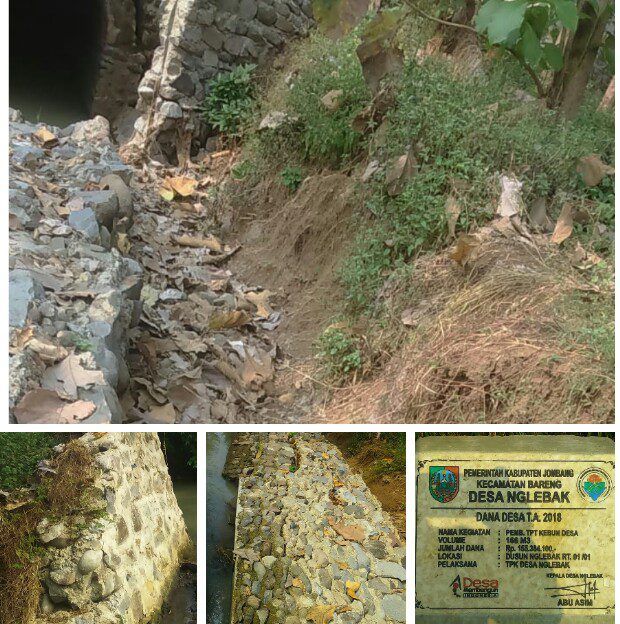 Jombang, RepublikNews – Robohnya plengsengan Tembok Penahan Tanah di sungai Ngeblak tepatnya di dusun Nglebak desa Nglebak kecamatan Bareng kabupaten Jombang Jawa Timur layak di pertanyakan, pasalnya dari data temuan tim investigasi RepublikNews, proyek penahan tanah sungai Ngeblak yang di bangun dari Dana Desa senilai Rp. 150 juta lebih tersebut di duga salah konstruksi dan tidak memenuhi standart bangunan.