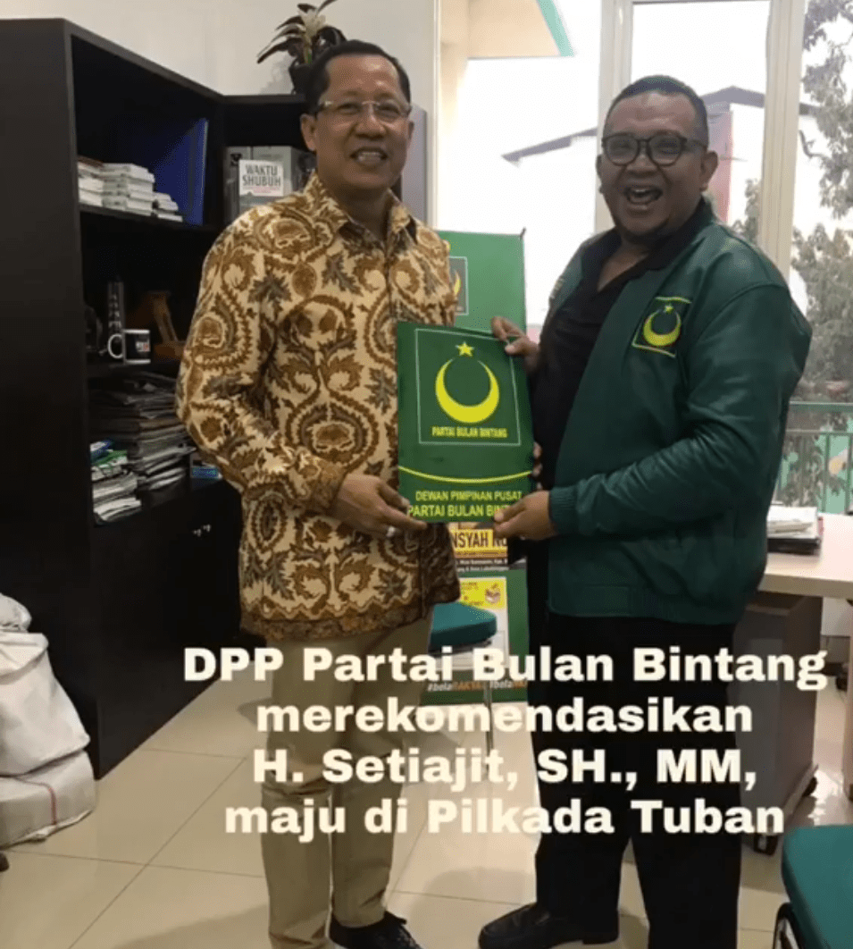 Setelah sebelumnya Sekretaris DPP PDIP Hasto Kritiyanto mengisyaratkan akan memberi rekomendasi pada Setiajit dengan menunjukkan keakrabannya di hadapan kader PDIP Tuban, justru DPP Partai Bulan Bintang (PBB) sudah melangkah lebih maju.