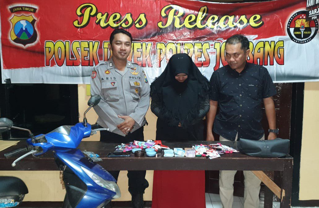 Pelaku diamankan petugas saat menjalankan aksinya pada Minggu, 15 September 2019 di Indomart Jl Raya desa Diwek, kecamatan Diwek. Dari penangkapan pelaku, petugas menyita barang bukti gambar CCTV rekaman tersangka saat melakukan pengambilan barang, beberapa jenis barang hasil curian, uang sisa hasil penjualan barang Rp 215.000,00, 1 buah tas warna abu-abu, 1 buah jilbab warna hitam yang dipakai saat mencuri, 1 buah baju warna hitam, 1 buah rok warna merah, 1 Hp merk Samsung A50, serta 1 unit motor Honda Beat Nopol S 3482 XS.