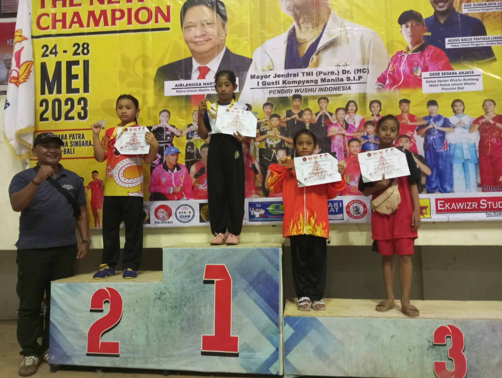 Pada ajang tersebut, anak dari Serka I Made Juli Wardana itu telah berhasil menyabet 1 emas dan 2 perak pada ajang Wushu yang digelar mulai tanggal 26 Mei hingga 28 Mei tersebut.