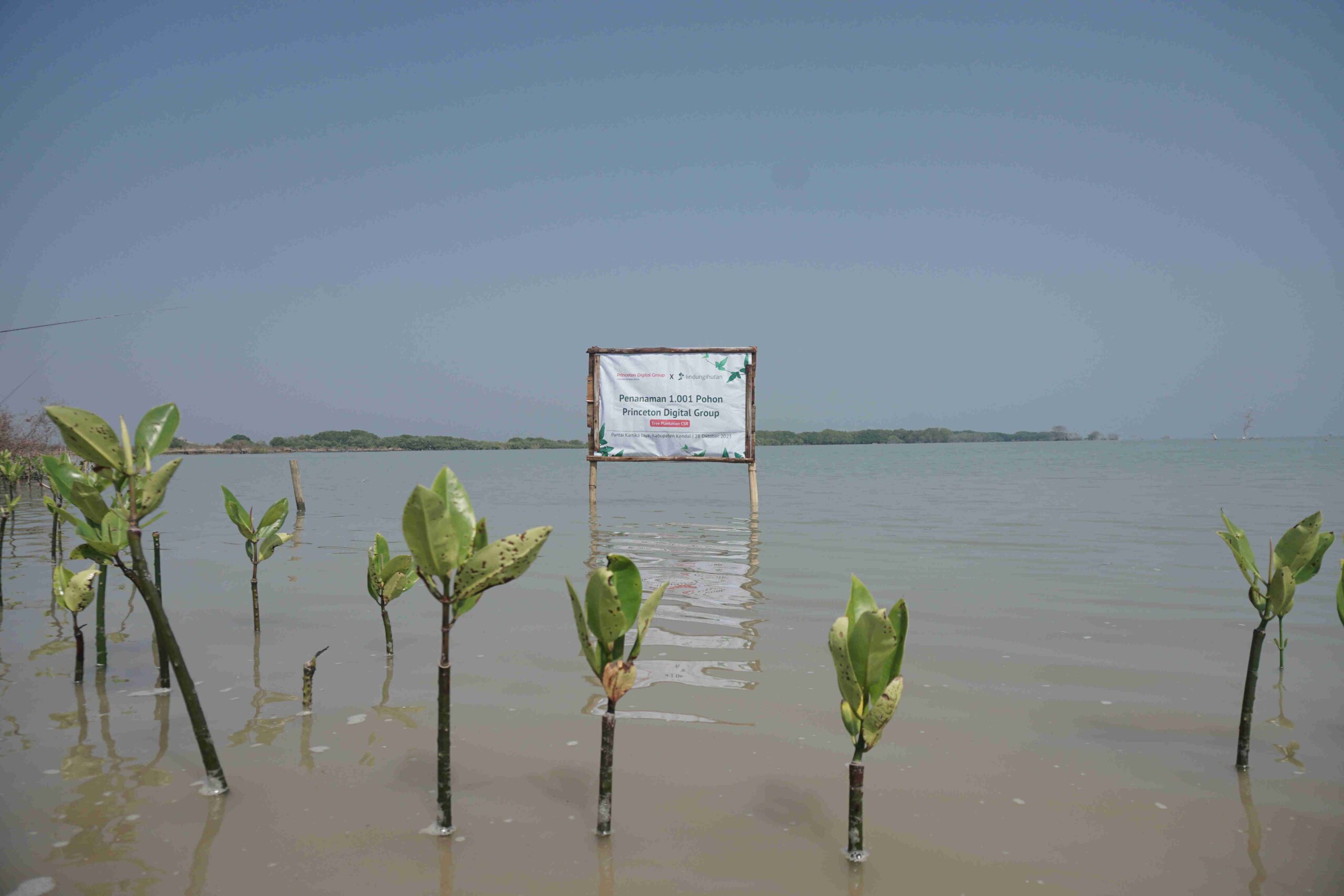 Kolaborasi Princeton Digital Group (PDG) dengan LindungiHutan, berhasil tanam 1.000 Mangrove Rhizophora sp. di Pantai Kartika Jaya pada 28 Oktober 2023. Aksi tersebut merupakan perwujudan CSR perusahaan dalam rangka peresmian gedung baru JC2 PDG di Kabupaten Bekasi.
