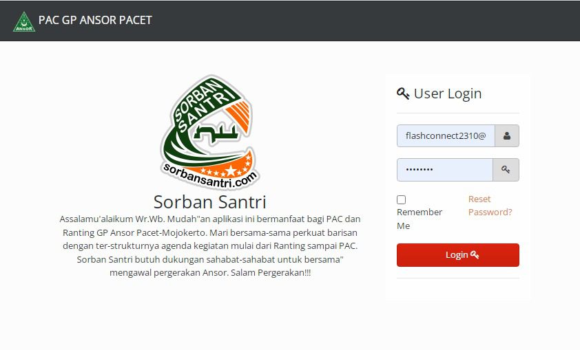 Mengingat sekarang ini adalah jaman yang serba digital, memang sudah seharusnya Ansor harus update juga dalam penanganan organisasi. Dan menurut sorban santri PAC Pacet Mojokerto itu layak sebagai PATRON organisasi untuk PAC-PAC lainnya. Makanya sorban santri merapatkan barisan dengan PAC Pacet dengan membuat aplikasi ansor untuk database dan kegiatan.( nul)