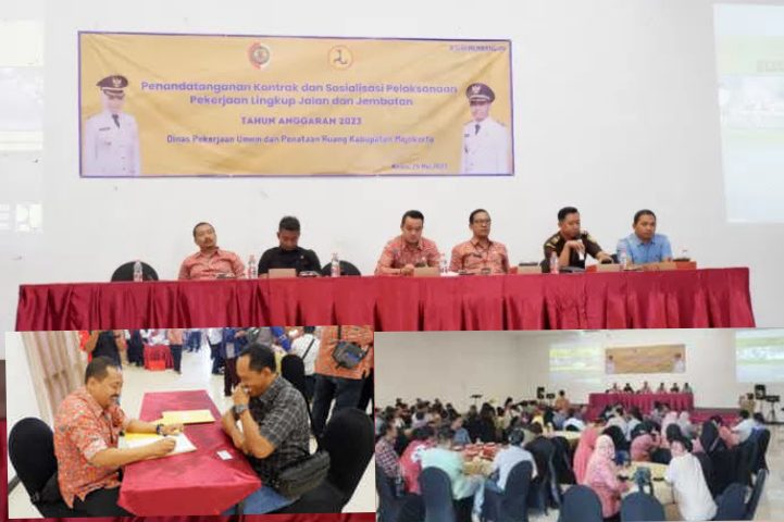 Insert Foto: Dinas PUPR Kabupaten Mojokerto, melakukan penandatanganan kontrak dengan puluhan kontraktor proyek di XOW, Kamis, (25/5).