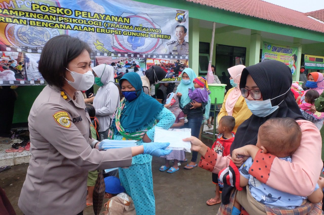 Warga masyarakat terdampak erupsi Gunung Semeru mendapatkan bantuan dukungan psikososial, psikoedukasi serta beberapa kebutuhan dasar yang diperlukan selama dipengungsian (selimut, masker, suplemen dan vitamin, susu dan sebagainya).