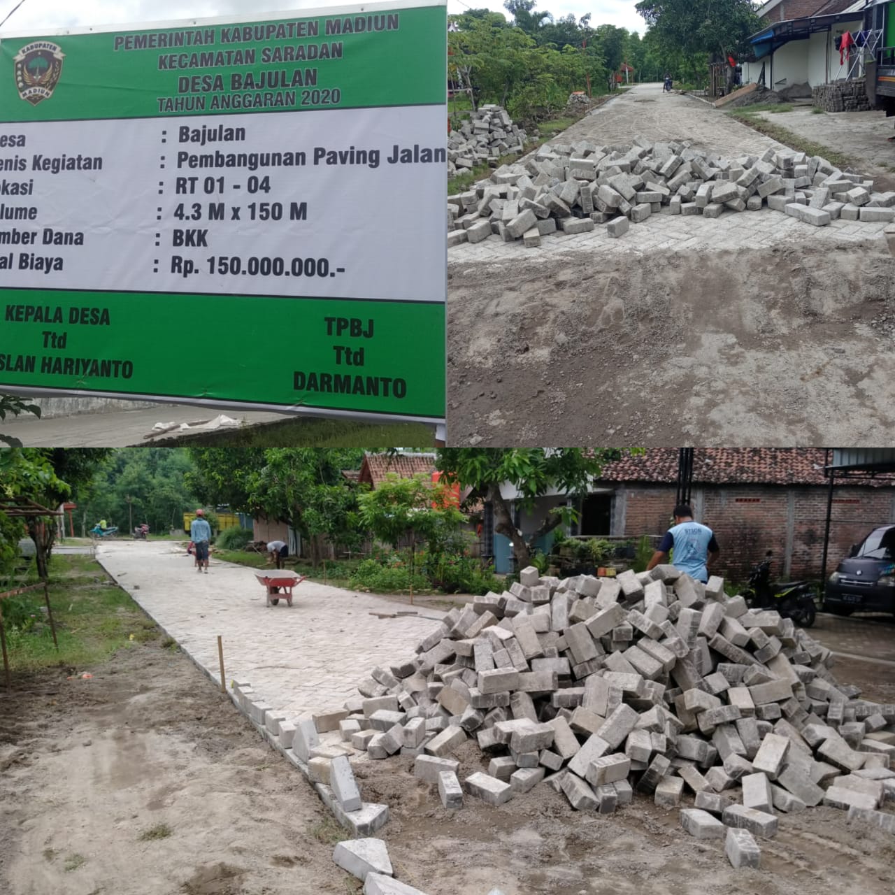 Dengan kucuran Dana Keuangan Khusus (BKK) dari Jaring Aspirasi Dewan Perwakilan Rakyat Daerah Kabupaten Madiun tahun 2020. Sebesar seratus lima puluh juta rupiah Rp,150,000,000 pemdes bajulan realisaikan pembangunan pavingisasi yang berlokasi di dusun Bajulan Rt,01 sampai dengan Rt,04 dengan panjang 150 meter dan lebar 4,3 meter.
