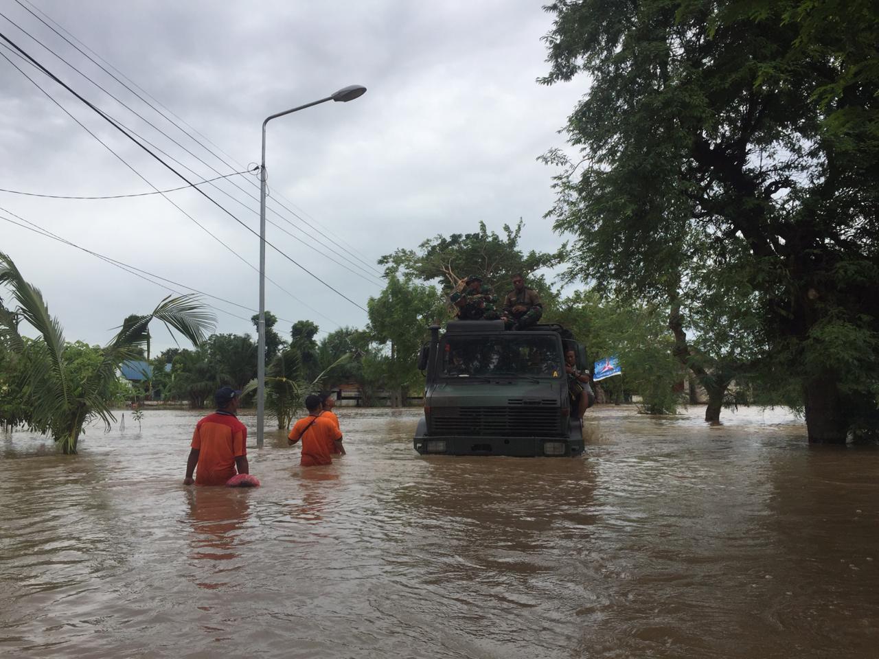 “Kami mengerahkan 6 truk – truk Unimog di sini, jumlah pasukan 1 SST di Kec. Kewadungan, 1 SST di Kec. Pangkur dan 1 SST di daerah Jenangan,“ kata Danyon Armed 12/Kostrad, Mayor Arm Ronald F Siwabessy ketika ditemui di lokasi banjir.