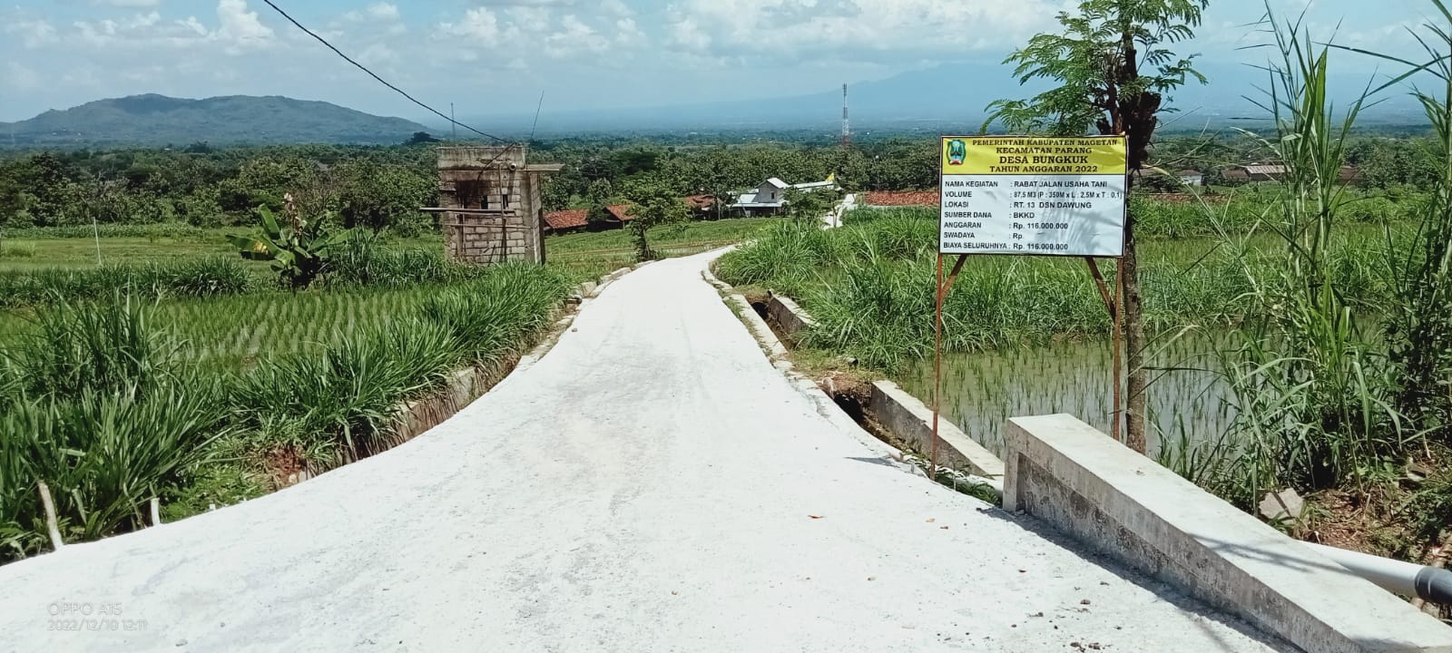Salah satunya Desa Bungkuk Kecamatan Parang, dengan program BKKD yang saat ini sudah terlaksana pembangunannya, dari perbaikan rabat jalan penghubung antar desa, rabat jalan usaha tani, sampai pembangunan pavingsasi jalan ke puncak Take Off Paralayang Gunung Bungkuk, yang mana dari pihak pemdes dan masyarakatnya di harapkan ke depan nantinya desanya menjadi desa wisata.