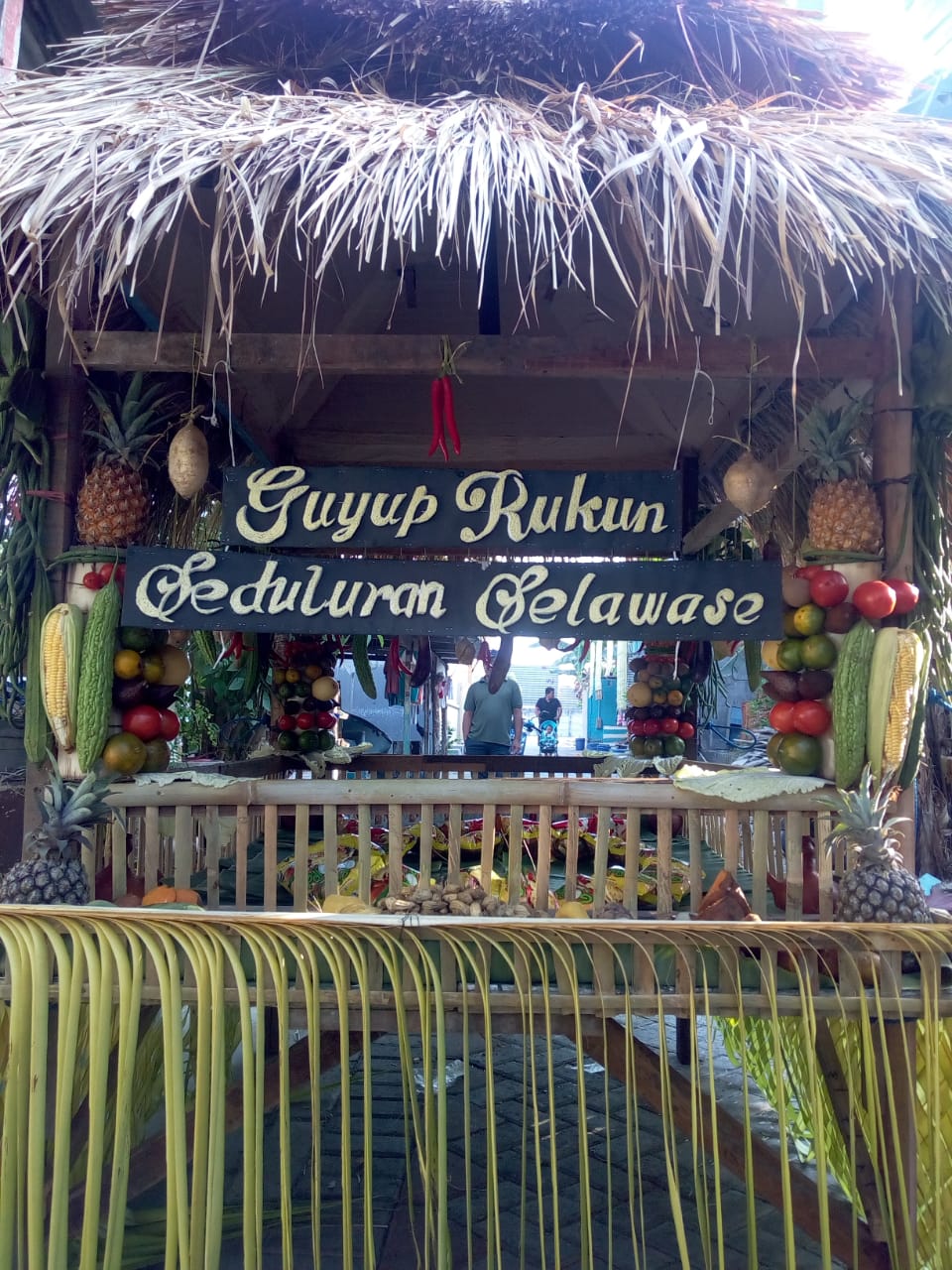 Ratusan warga berdoyong-doyong mengarak berbagai hasil bumi, berjalan dari rumah warga untuk dikumpulkan di balai desa Gempol untuk melakukan doa bersama.